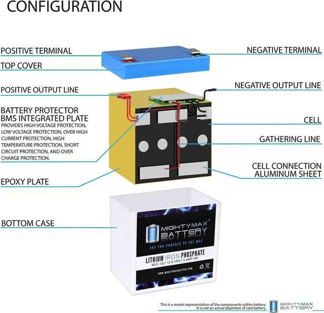ML5-12LI is a 12V 5Ah Lithium iron phosphate sealed, rechargeable and maintenance free battery. Direct drop in lead acid replacement.