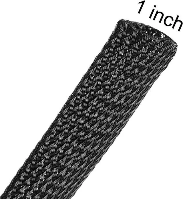 Size: PET expandable braided cable sleeve is 1" diameter and has a total length of 100 ft. It keeps cable clutter out of the way.