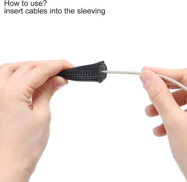 Instruction: You can cut the length of the tube to your desired size with a hot knife, it can prevent fraying. Braided cable sleeve in expanding at the same time can be shorten, please reserve enough length, sleeving ends can use insulating tape, heat shrink or zip ties.