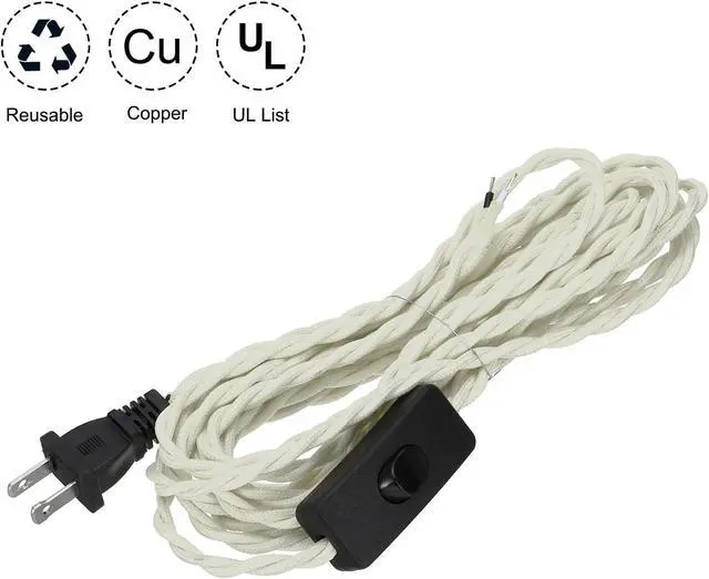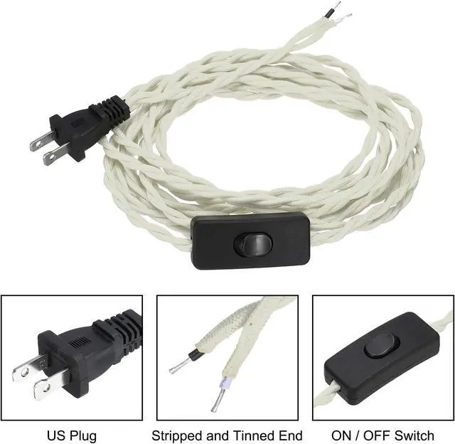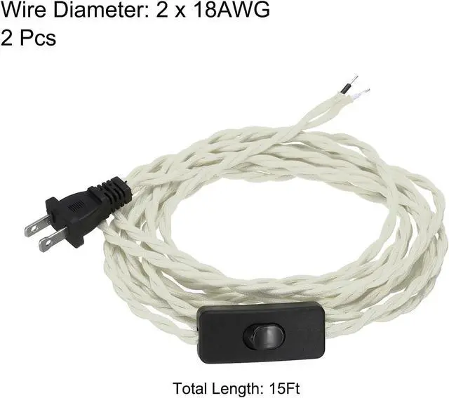 Specification: Color: Creamy White; Material: Braided, Copper; Total Length: 15Ft; Wire Diameter: 18AWG; Number of wire cores: 2; Packing List: 2 Pcs x cloth covered lamp cord