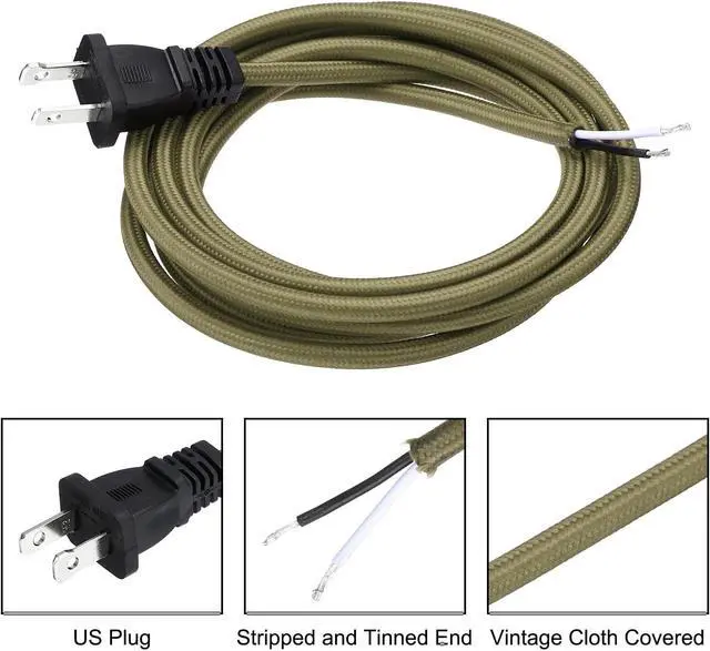 Instruction: The cloth covered lamp cord comes with stripped and tinned end for easy installation, good for wiring. It can be applied in narrow spaces such as bookshelves, desks, and most furniture, or near walls as an extension power cord.