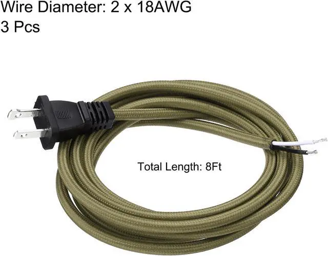 Specification: Color: Linen Color; Material: Braided, Copper; Total Length: 8Ft; Wire Diameter: 18AWG; Number of wire cores: 2; Packing List: 3 Pcs x cloth covered lamp cord