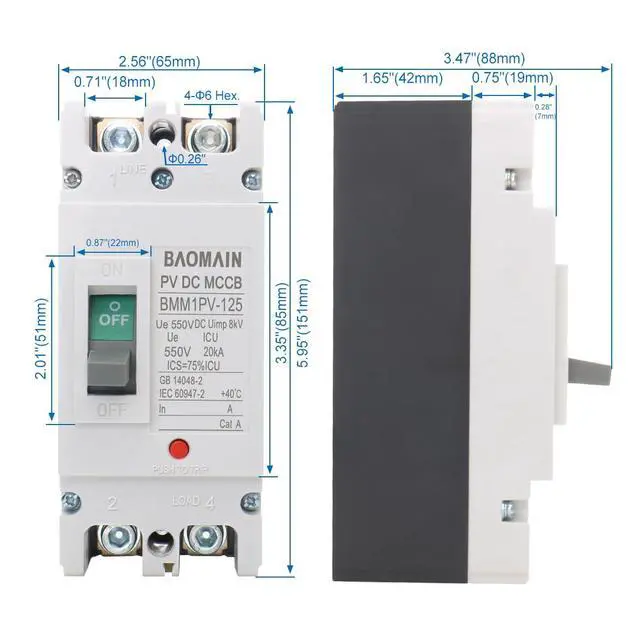 Rated Current: 100A; Rated Voltage(Ue): 550VDC; 50/60Hz