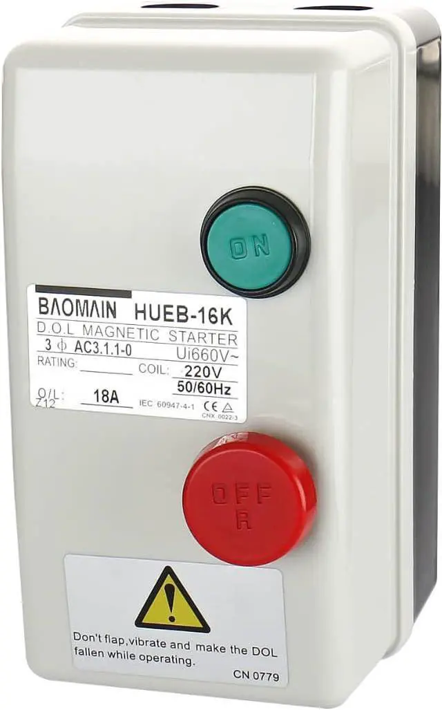 Model : HUEB-16K ; Coil: 220V, 50/60Hz Ui: AC 660V ; Rated Current:18A Size : 158 x 86 x 95mm / 6.2" x 3.4" x 3.7" (L*W*H) Weight : 716g Package Content : 1 x Magnetic Starter