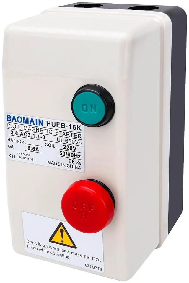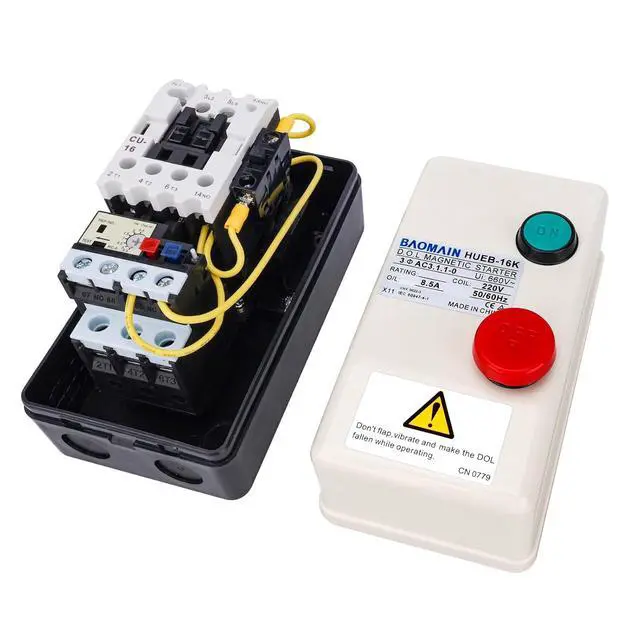 Baomain AC 220V Coil Magnetic Starter, 5.5-8.5A 3-Pole, Push Button Control Motor, HUEB-16K