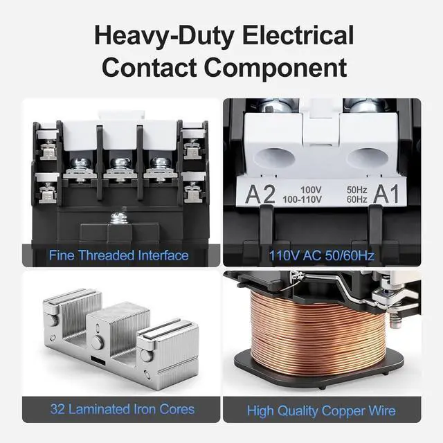• 110V AC Coil with 2NO+2NC Auxiliary ContactOperates with a 110V AC 50/60Hz coil voltage. Includes 2NO + 2NC auxiliary contact block for use in control circuit interlocking, status signaling, or self-latching circuits