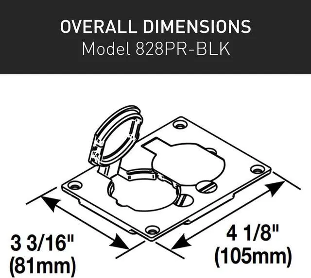 Allows for mounting of a duplex style receptacle with a rectangular style flip lid cover