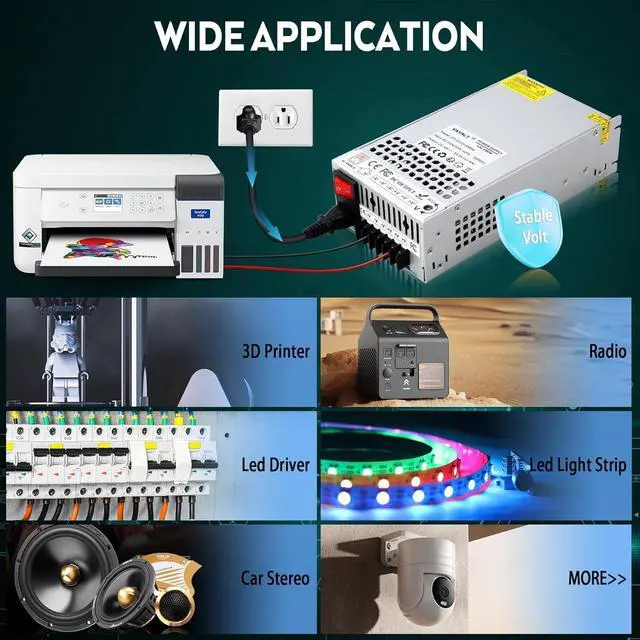 Important Reminder: Before use, please select 115V/230V through the switch to avoid damage. Set the switch to 115V for use in the United States VAYALT 12V 83.3A 1000W DC Switching Power Supply, 110V/220V AC to DC 12V Converter Technical Specifications: Intelligent Cooling System Important Notes:
