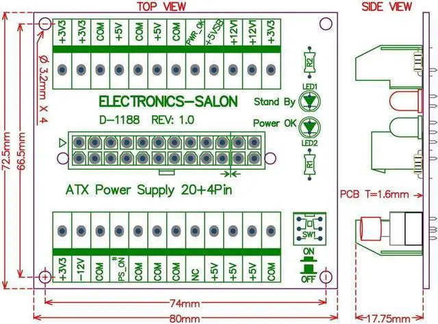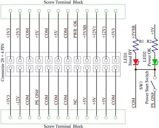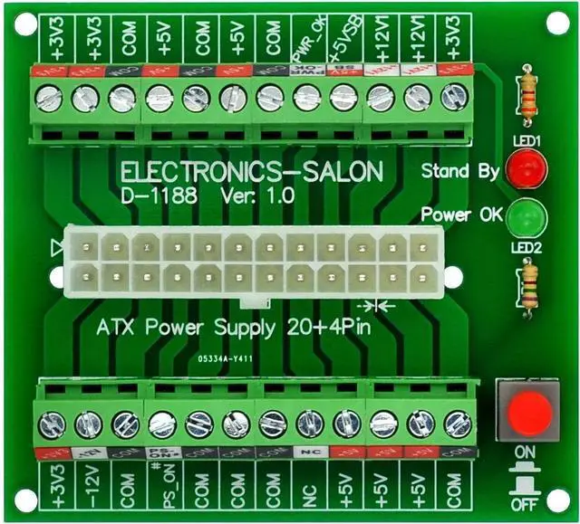 Electronics-Salon 24/20-pins ATX DC Power Supply Breakout Board.