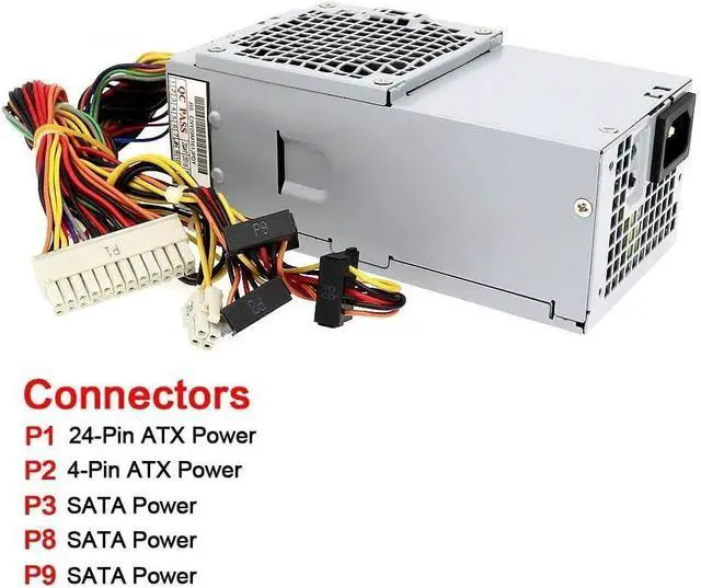 Compatible Systems ModelFor DELL Optiplex 390 790 990 3010 537s 540s 545s 546s 560s 570s 580s 620s Vostro 200s 220s 230s 260s 400s Studio 540s 537s 560s DT Desktop SystemCompatible Model NumbersL250NS-00, PS-5251-08D, D250AD-00, PS-5251-5, H250AD-00, D250A1005L, D250ED-00, DPS-250AB-67 A, F250ED-00, D-0250ADU00-101, D250ND-00, REF, DPS-250AB-73A, AC250NS-00, PCA038, TFX0250D5WB, D250AD-01, D250ED-01, DPS-250AB-68 A, F250AD-00, D-0250ADU00-201, PC7068, HP-D2506R0, DPS-250AB-36, H250ED-00, D250E006L, PS-5251-06Compatible Part NumberCYY97, 7GC81, HY6D2, WX9P8, 6MVJH, YJ1JT, 3MV8H, 3WFNF, 5FFR5, 76VCK, MPX3V, PWJ55, T498G, W208D, W209D, W210D, X3KJ8, XFWXR, FY9H3, 375CN, G4V10, NCYVN, XSKJ8ConnectorsP 1: 24 -Pin ATX Power, P 2: 4 -Pin ATX