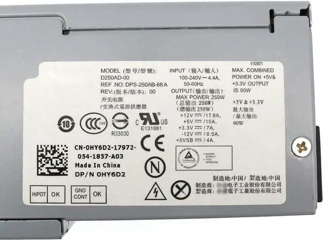 Output: Max Output 250w, DP/N: HY6D2 0HY6D2Package Includes1*Desktop Power Supply Unit (250W). 250W Replacement Power Supply for Dell Optiplex 390 3010 990 790