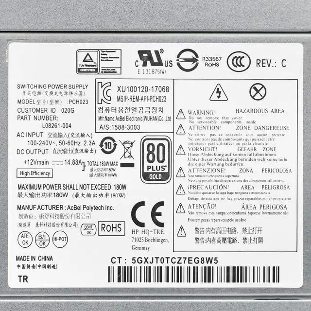 This is New LXun Upgraded L08261-004 180W PCH023 Power Supply Compatible with HP ProDesk G5 Pavilion 590-p0XXX 590-P0097CB PCG003 HK280-85PP L70042-004 L08261-006 Series Entl18 SFF Power Supply.