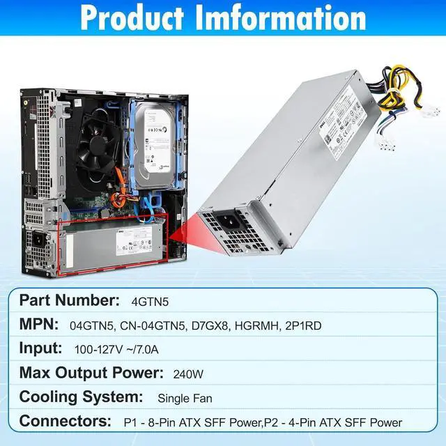 Compatible Model: For Dell Optiplex 3040, Optiplex 5040, Optiplex 7040, Inspiron 3650 3656