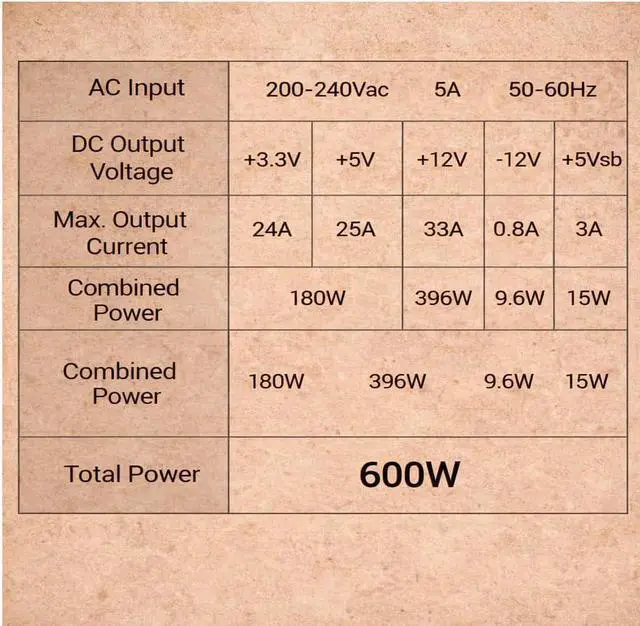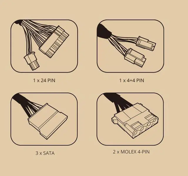 FULL BLACK CABLE AND CASE: The APIII600 comes in an all-black finish with high quality, long, flat black cables designed for maximum compatibility and convenient installation: 1 20+4pin, 1x12V 4+4pin, 3xSATA, 2xPATA; *This power supply does not include PCIe connector for graphics cards; please check if your graphics card has a such need need