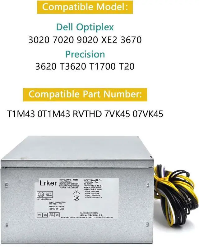 Compatible Model: Dell Optiplex 3020 7020 9020 XE2 3670 Precision 3620 T3620 T1700 T20