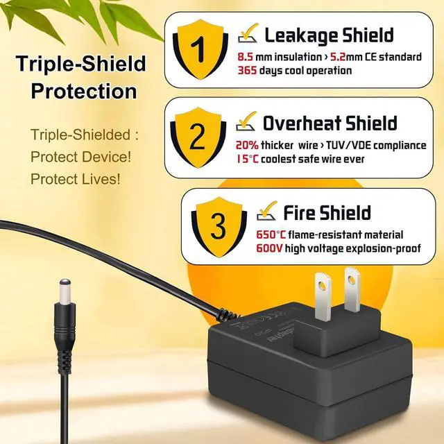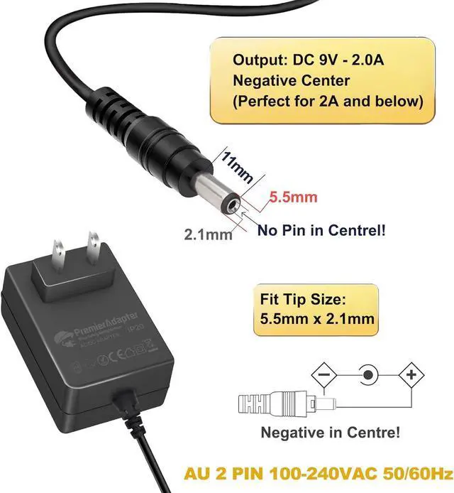 Output: 9V - 2A; // Compatible for 2A or less, as amperage isn't forced