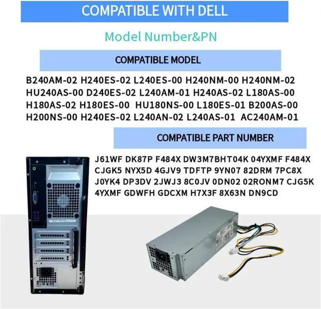 H240ES-02 L240ES-00 240W Power Supply Compatible with Dell OptiPlex 3050 5050 7050 Mini Tower H240AS-02 HU240AS-00 HU240AS-02 H240NM-00 H240NM-02 P/N: DK87P DW3M7 J61WF HT04K F484X Compatible Model: Dell OptiPlex 3667 3668 3669 3050 5050 7050 7060 3660 3268 3670 3470