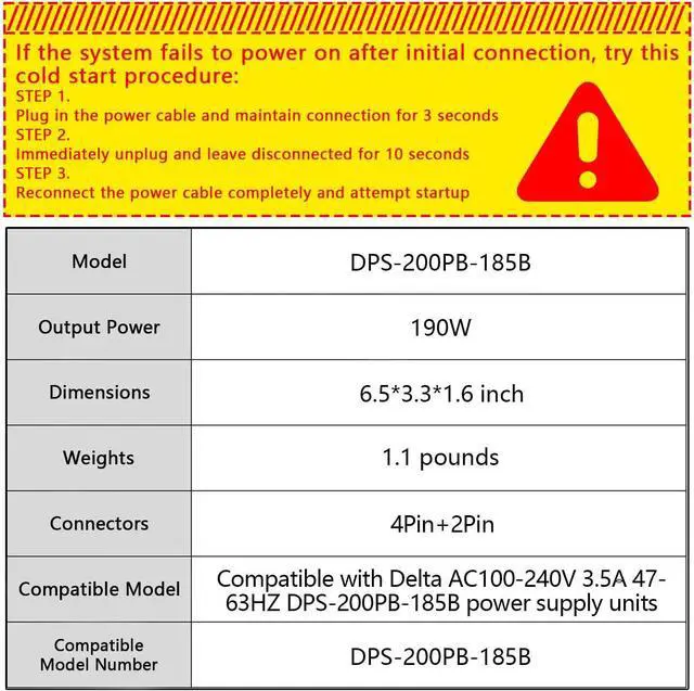 Compatibility: Compatible with Delta AC100-240V 3.5A 47-63HZ DPS-200PB-185B power supply units.