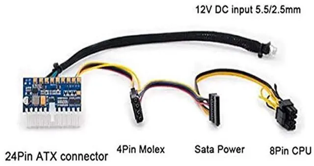 The atx power supply with 24 pin ATX connector, Plugs directly into the ATX connector,pico psu with adapter