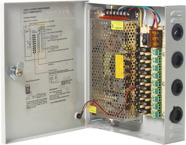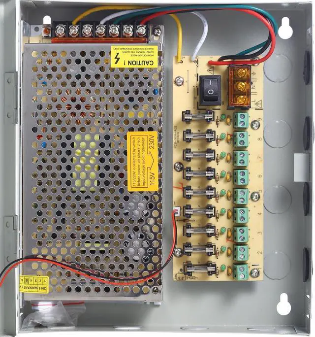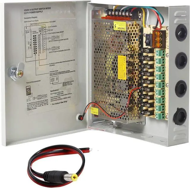 UHPPOTE 9CH Port Power Supply Box CCTV Camera Distribution PTC Fuse DC12V 10A + Pigtail