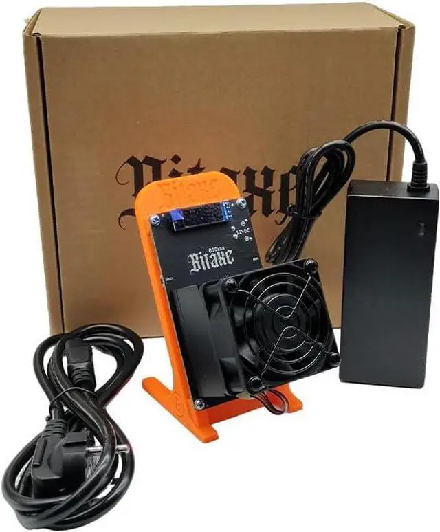 COMPLETE PACKAGE: Includes the mining device with orange stand for stable desktop placement, power adapter with appropriate connectors, and power cable for immediate setup