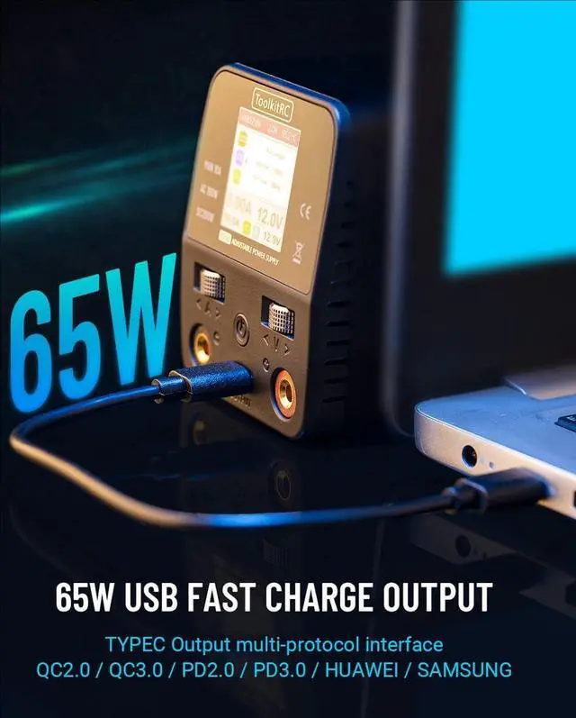 Type-C output: 5.0-20.0V. Max 65W