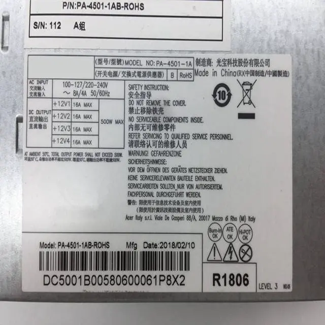 PSU for Veriton m6660g B36H4-AI 6Pin PCIE6+8P 500W Power Supply PA-4501-1A D19-500P1A PA-2301-3 D17-300P2A