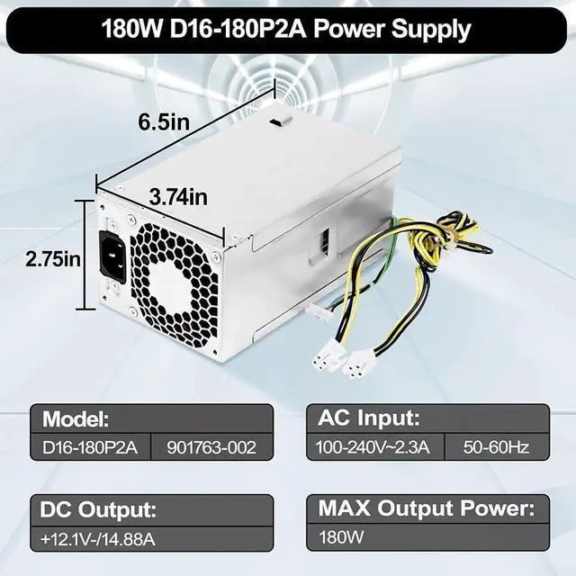 • [COMPATIBLE WITH MULTIPLE MODELS] This 180W power supply is designed specifically for ProDesk 800 for G3, 600 for G3, SFF 280, and 285 models, ensuring a stable power source tailored for your office desktops and small workstations.
