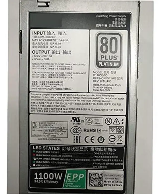PSU for R530 630 730 730 T430 630 1100W Power Supply D1100E-S0 L1100E-S1 DPS-1100BB B W12Y2 TFR9V Y26KX 0PR21C