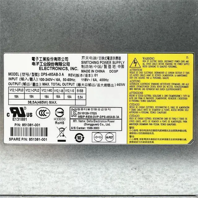 For Z4 G4 465W Switching Power Supply DPS-465AB-3 A DPS-465AB-3A 851381-001 18+12Pins