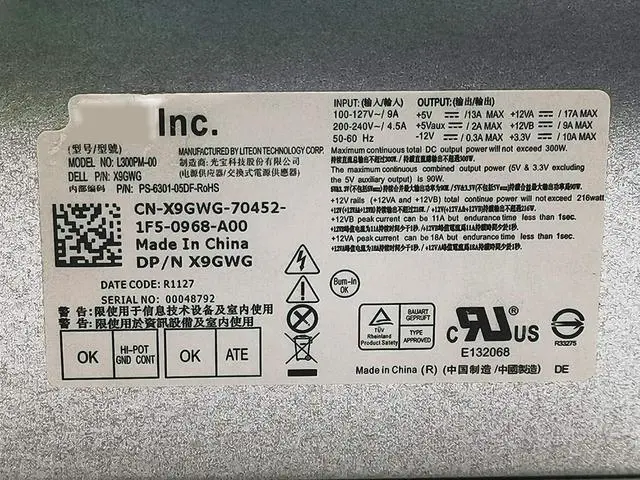 Compatible Mfr Models:B300NM-00 B300PM-00 B300PM-01 H300NM-00 HP-P3017F3 D300EM-01 D300ND-00 D300PD-00 L300PM-00 L300PM-01 PC7050 PS-5301-08 PS-6301-02 PS-6301-5 DPS-300AB-24 HP-P3017F3 HP-P3017F3P PC8035 DPS-300AB-24