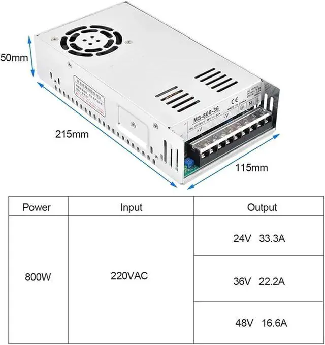 800W Switching Power Supply Input 220VAC 24V/36V/48V SMPS for LED Strip Light CCTV Motor MS-800(36V 22.2A)