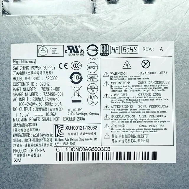 for EliteOne 800 G1 AIO 200W Power Supply 80+Platinum PSU 733490-001 702912-001 APC002 D12-200P2A