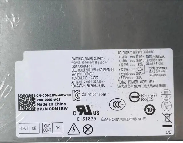 for XPS 8910 XPS 8920 XPS 8300 8500 8700 8900 Aurora R5 R6 Power Supply DM1RW GJXN1 1XMMV 460W AC460AM-01 Power Supply