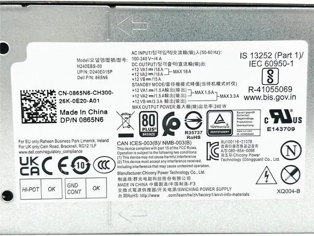 240W Power Supply for Optiplex 3000MT 5000MT 7000MT 3710 3910 T3660 L240EBS-00 H240EBS-00 FHRVJ KK2Y8 H0GX2 865N6