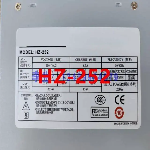 HZ-252 250W Power Supply Unit with 20PIN Connector and 8 For SATA Outputs - Reliable 230V for Desktop Systems