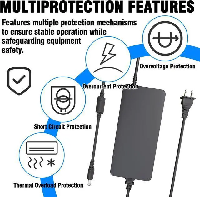 Multi-Protection Features:This power adapter offers safety with over-voltage, over-current, short circuit, and thermal overload protections. It ensures reliable performance while safeguarding your devices from damage