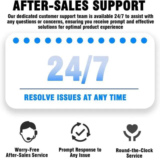After-Sales Support:Our dedicated customer support team is available 24/7 to assist with any questions or concerns, ensuring you receive prompt and effective solutions for optimal product experience