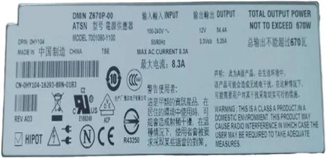 1PC PSU for 1950 670W Power Supply Z670P-00 D670P-S0 7001050-Y100 DPS-670CB A HY104 HY105 UX459 A670P-00