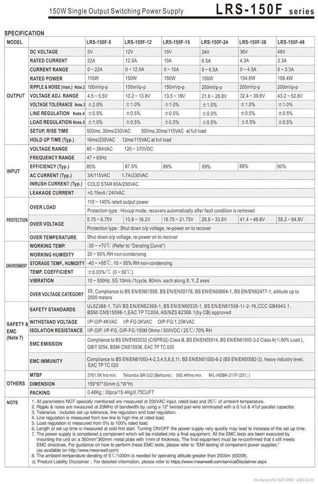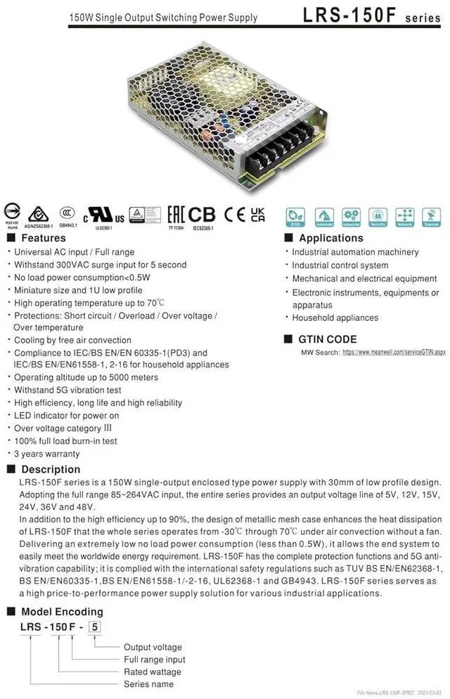LRS-150F-12 150W Single Output Switching Power Supply LRS-150F 12V 12.5A