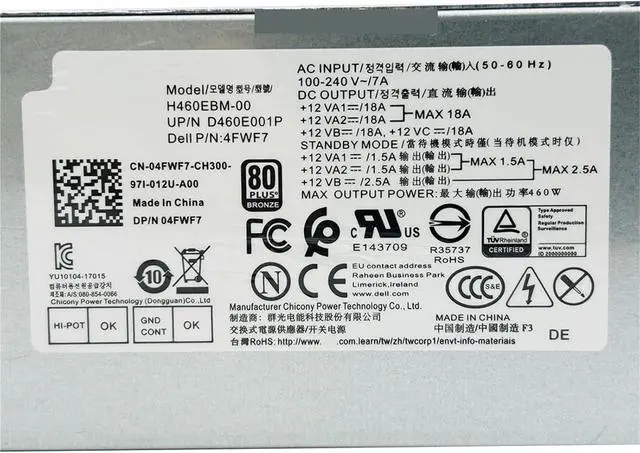 1pc for 3046 3040 3050 5050 MT G5 5090 XPS 8940 Power Supply 6+4PIN H460EBM-00 D460E001P CN-04FWF7 04FWF7 4FWF7