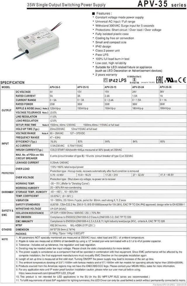 APV-35-5 5V/5A Constant Voltage Design 25W Single Output LED Switching Power Supply