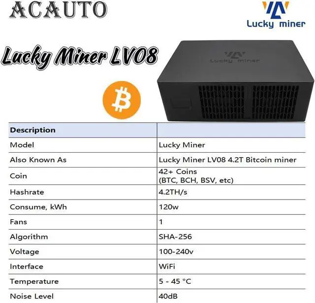 The Lucky Miner LV08 delivers robust 4.2TH/s hash power through its advanced BM1366 ASIC chip and SHA-256 algorithm, optimized for mining BTC, BCH, BSV, and 42+ coins with high efficiency. Designed for 24/7 operation, this miner balances performance and reliability for both home and professional setups