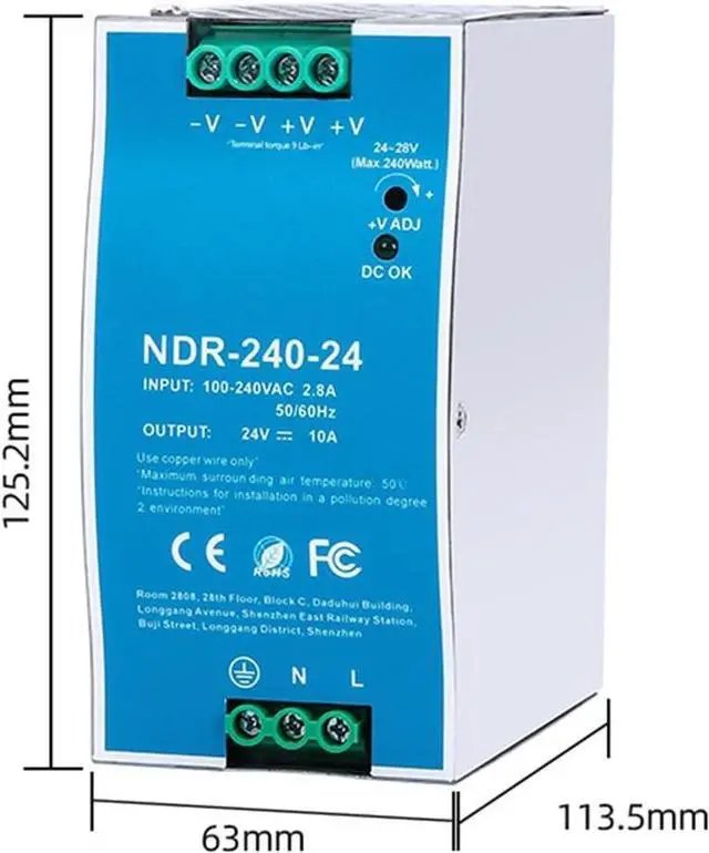 [STABLE OUTPUT FOR AUTOMATION DEVICES] Providing a consistent 24V DC output at 10A current, the NDR 240 24 is for powering automation devices in various settings.