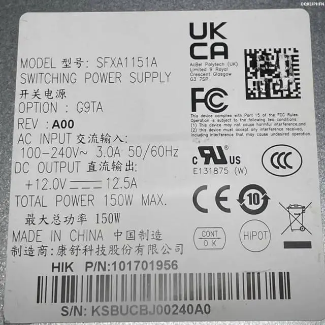 Output Current : 12.5A Output Voltage : DC 12v Output Power : 150W Input Voltage : AC110V/220V Origin : Mainland China Model Number : SFXA1151A SFXA1071A U1A-G10075-S-A1 HK250-48PP DPS-150AB-25 A