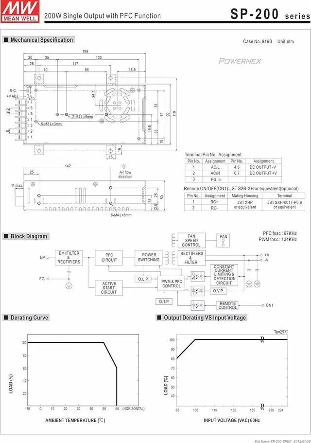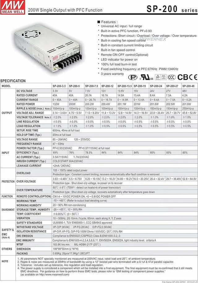 MW Mean Well SP-200-12 12V 16.7A 200W Single Output with PFC Function Power Supply