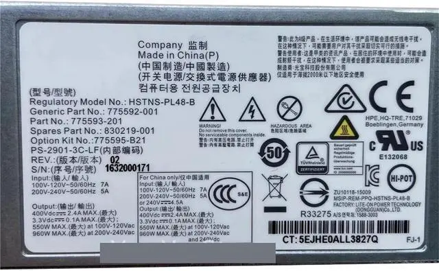 1pc for DL20 160 G9 900W Power Supply 775595-B21 775592-001 775593-002 830219-001 HSTNS-PL48 B