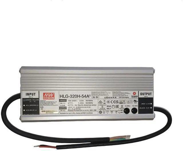 Engineered for harsh industrial environments, the HLG-320H-54A features a rugged IP67-rated enclosure that is both waterproof and dustproof. This robust design ensures reliable operation even in challenging conditions, protecting against dust, water, and other contaminants.