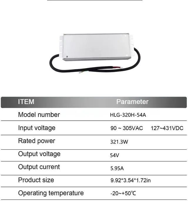 Efficiency is paramount in industrial settings. The HLG-320H-54A achieves an impressive efficiency rating of up to 95%, reducing energy waste and reducing operating costs, contributing to a more efficient and Economical automation system.