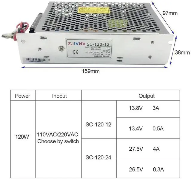 SC-120W-12 120W 12V Universal AC UPS/Charge Function Monitor Switching Power Supply Input 110/220v 13.8v 12v Battery Charger